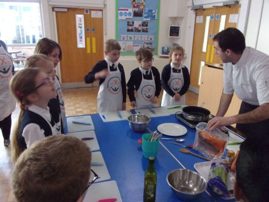 Mary Reader explains “a major part of our sessions is about the children tasting the food. We always re-group at the end of the sessions and the children tell us what they have learned from taking part. So many children are surprised to find that they do like things that they thought they didn’t like, with the fish often being a favourite food choice! We encourage the children to think about sustainability and encourage them to buy local food and to grow their own fruit and vegetable wherever possible, even if it is having a few pots of herbs outside the back door or on a balcony for those that live in flats.